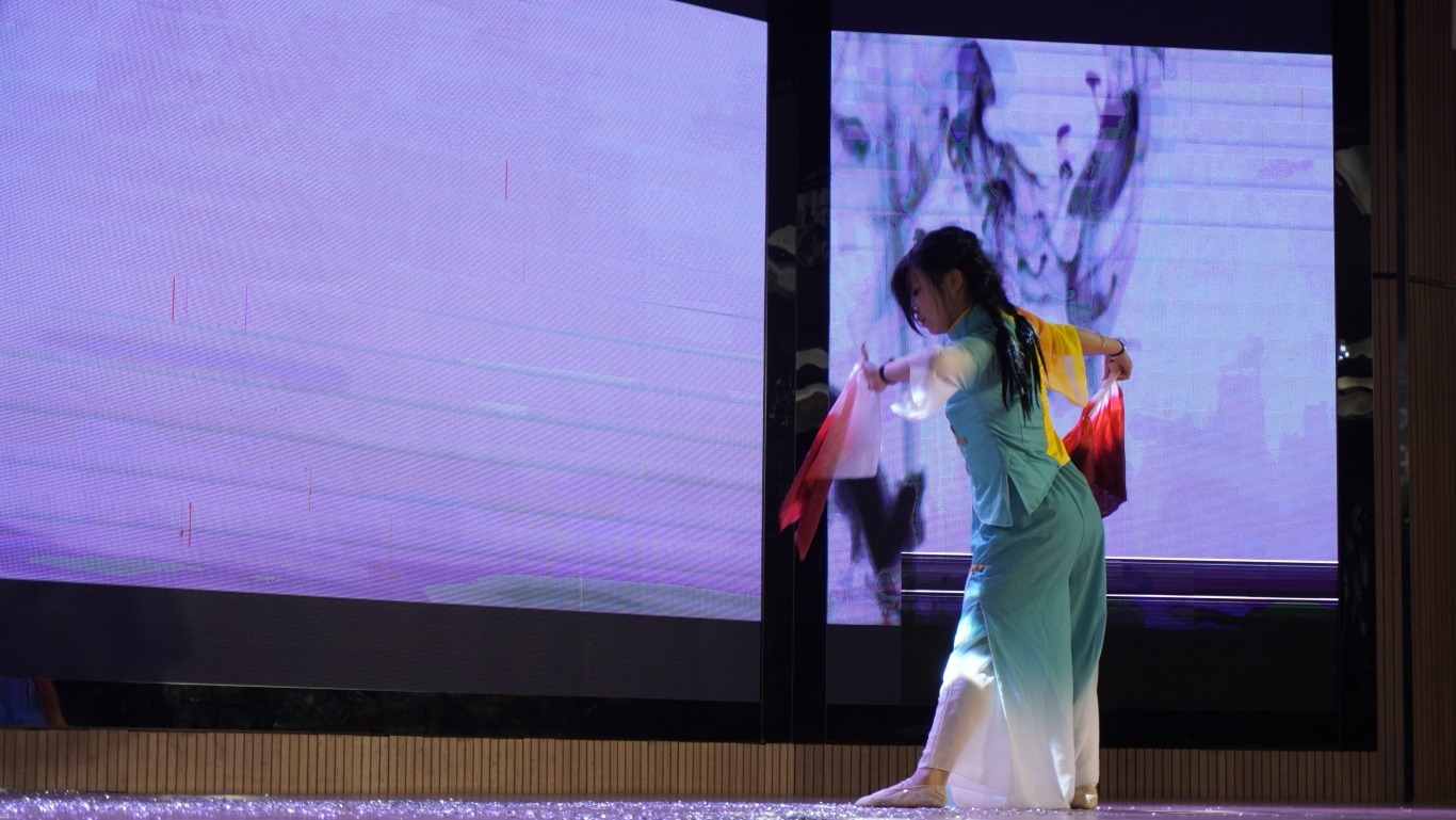 古典舞表演則宛如一幅徐徐展開(kāi)的水墨畫(huà)卷。舞者們身著飄逸華服,伴隨著悠揚(yáng)古樂(lè),水袖輕揚(yáng)、云步蹁躚。她們時(shí)而凝眸頷首,演繹含蓄溫婉之美;時(shí)而旋轉(zhuǎn)騰挪,展現(xiàn)剛?cè)岵?jì)之姿。從“輕羅小扇撲流螢”的靈動(dòng),到“霓裳羽衣舞蹁躚”的大氣,一招一式皆韻味十足,將東方美學(xué)的典雅與詩(shī)意展現(xiàn)得淋漓盡致。