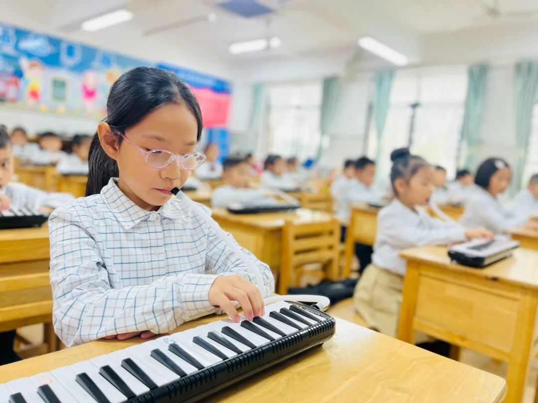 ?我們致力于藝術(shù)校園、幸福校園的建設(shè)目標(biāo),旨在促進(jìn)學(xué)校藝術(shù)學(xué)科的發(fā)展,培養(yǎng)學(xué)生在音樂方面的感受、表現(xiàn)和審美能力。為此,我們推出了“樂器進(jìn)課堂”這一音樂特色課程。音樂教育構(gòu)成了孩子全面發(fā)展的關(guān)鍵要素,通過掌握樂器演奏,孩子們不僅習(xí)得一項藝術(shù)技能,還在諸多領(lǐng)域?qū)崿F(xiàn)了成長。研究揭示,學(xué)習(xí)樂器能夠提升孩子的記憶力、專注力以及創(chuàng)造力。此外,它亦有助于提升孩子們的團(tuán)隊協(xié)作能力和社交技巧。