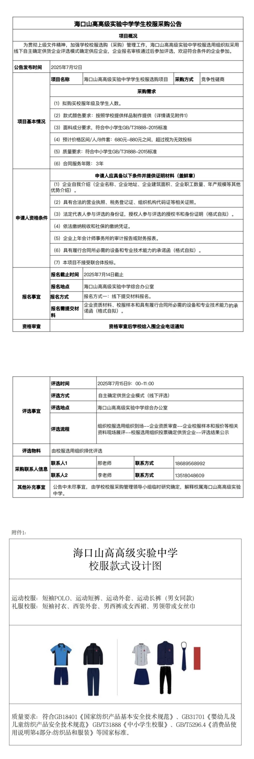 ??谏礁吒呒?jí)實(shí)驗(yàn)中學(xué)學(xué)生校服采購公告