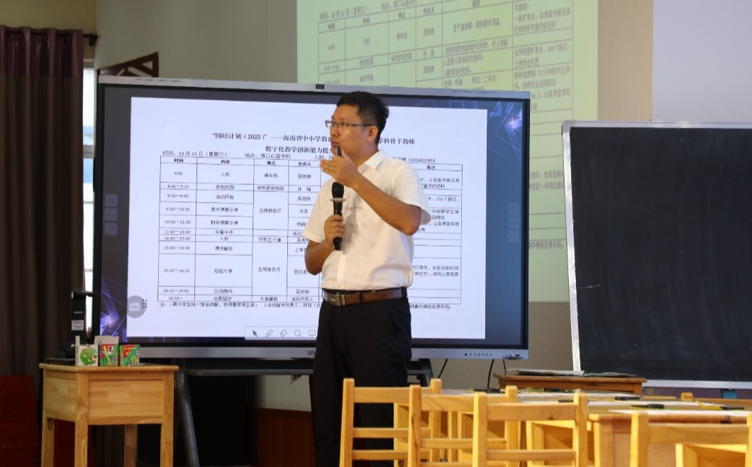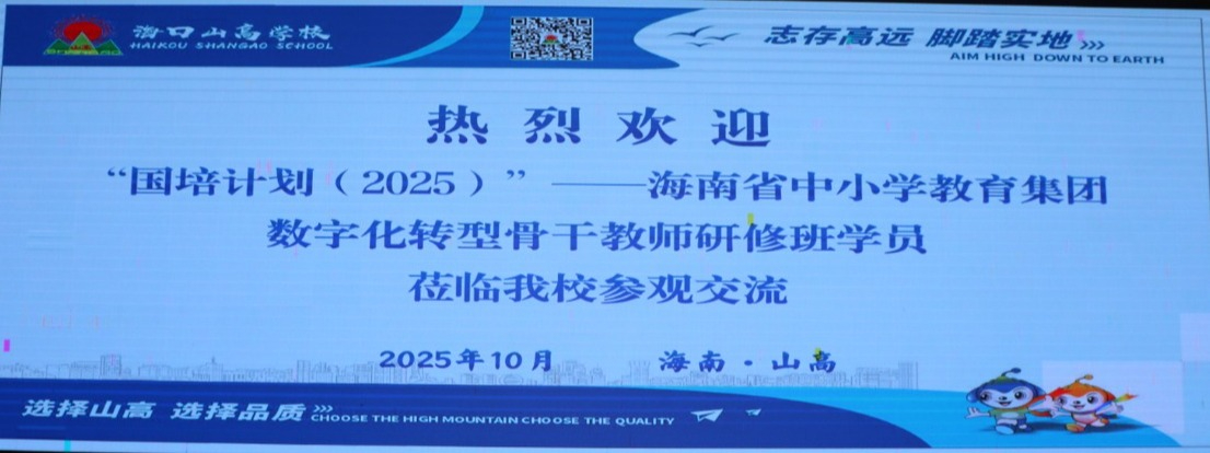 2025年10月22日,“國(guó)培計(jì)劃(2025)”——海南省中小學(xué)教育集團(tuán)數(shù)字化轉(zhuǎn)型學(xué)科骨干教師數(shù)字化教學(xué)創(chuàng)新能力提升培訓(xùn)活動(dòng)走進(jìn)??谏礁邔W(xué)校,聚焦數(shù)字化教學(xué)創(chuàng)新開展了一場(chǎng)集“校園參觀研學(xué)、數(shù)字課堂展示、課例復(fù)盤解析、AI 經(jīng)驗(yàn)分享、教研互動(dòng)交流”于一體的研修盛宴。