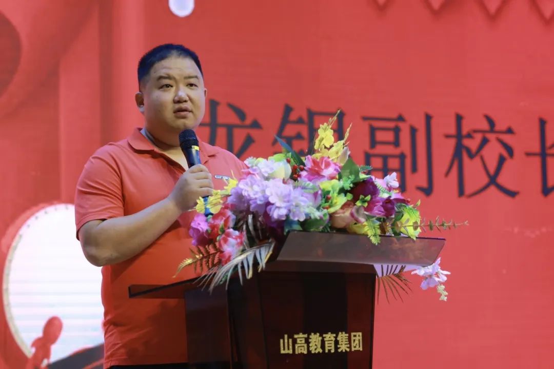 ? ? ? ?“寒窗苦讀十二載,高考戰(zhàn)場(chǎng)試鋒芒?!焙?谏礁吒呒?jí)實(shí)驗(yàn)中學(xué)教學(xué)副校長(zhǎng)龍銀以鏗鏘詩(shī)韻點(diǎn)燃全場(chǎng)。他指出:“晨起背書(shū)的堅(jiān)持,是成人的自律;模擬考后的反思,是成人的自?。煌肮策M(jìn)的拼搏,是成人的擔(dān)當(dāng);百日沖刺是知識(shí)的積累,亦是品格的錘煉”。