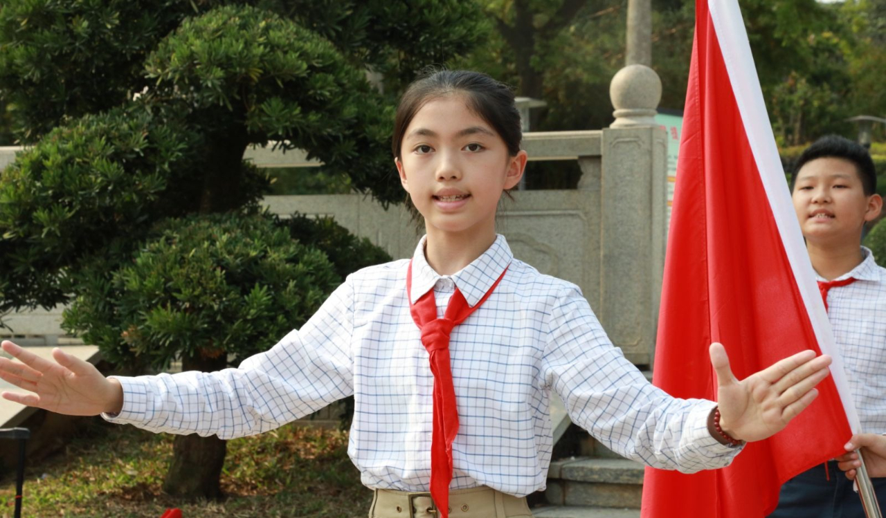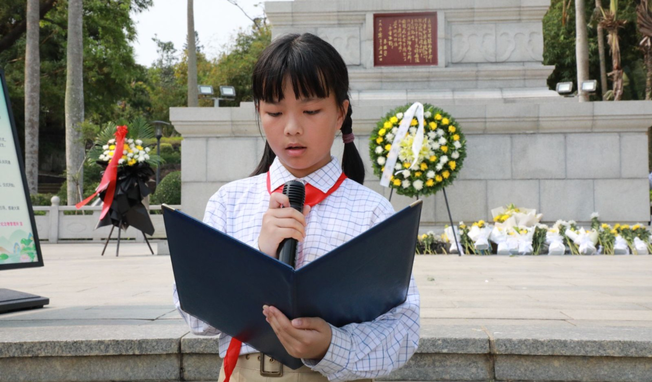 四(5)班吳優(yōu)同學(xué)作為少先隊(duì)員代表發(fā)言,借緬懷先烈事跡,強(qiáng)調(diào)其對(duì)當(dāng)下幸福生活的貢獻(xiàn),呼吁新時(shí)代少年珍視優(yōu)越條件,以先烈精神為指引,砥礪自身,勇?lián)鷷r(shí)代使命,表達(dá)了對(duì)先烈的緬懷及傳承紅色基因、助力民族復(fù)興的決心 。