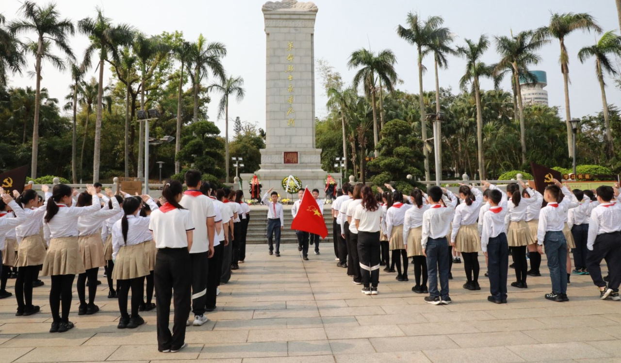 為了培育學(xué)生的歷史責(zé)任感,激勵(lì)他們以積極的態(tài)度面向未來(lái),樹立起有責(zé)任、有擔(dān)當(dāng)?shù)男聲r(shí)代少年形象,2025 年 3 月 28 日,??谏礁邔W(xué)校開展了清明烈士陵園祭奠先烈活動(dòng),學(xué)校黨員代表及少先隊(duì)員代表共同參與其中。活動(dòng)以緬懷先烈為契機(jī),引導(dǎo)學(xué)生們以先烈為榜樣,在心中種下?lián)?dāng)?shù)姆N子,積極面對(duì)未來(lái)的學(xué)習(xí)與生活 。