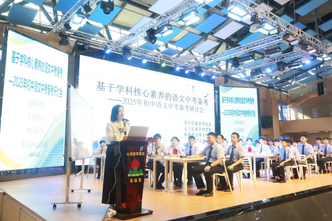 ? ? ? ?春風(fēng)化雨潤(rùn)桃李,教研賦能促提升。4月22日上午,2025屆初中語(yǔ)文中考備考研討會(huì)在我校報(bào)告廳召開(kāi),本次活動(dòng)由龍華區(qū)教學(xué)研究室和美蘭區(qū)教學(xué)研究室共同舉辦,林惠萍名師工作室主辦,海口市龍華區(qū)山高實(shí)驗(yàn)學(xué)校承辦。