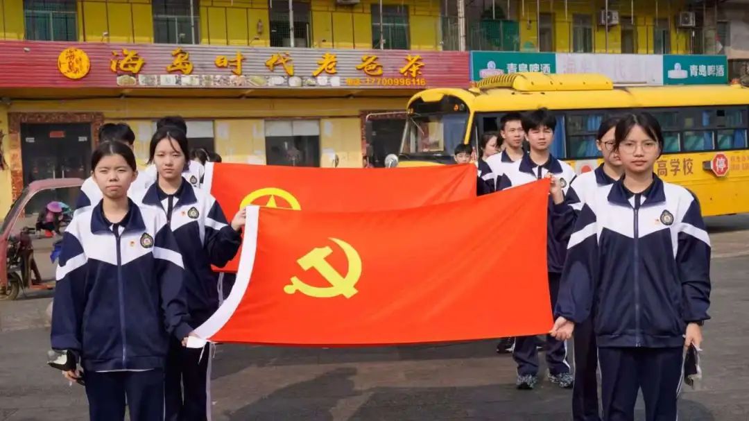 全體師生于烈士紀(jì)念碑前合影。鏡頭中,團(tuán)旗與黨徽交相輝映,青春面龐與先烈英魂隔空相望?;顒与m落幕,但精神的火炬已悄然傳遞。