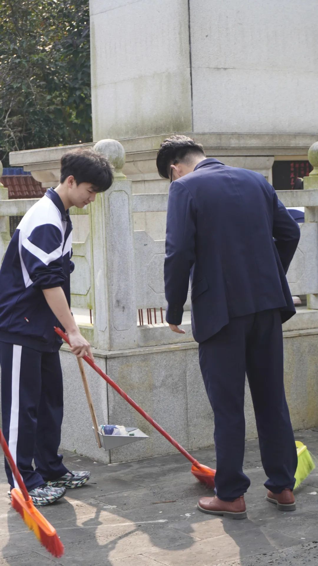 隨后,師生前往無名英雄墓處,獻(xiàn)上了手中的菊花,隨后組織清掃了陵園落葉、輕拭墓碑。抹布拂去塵埃,烈士的姓名與事跡重現(xiàn)光輝。