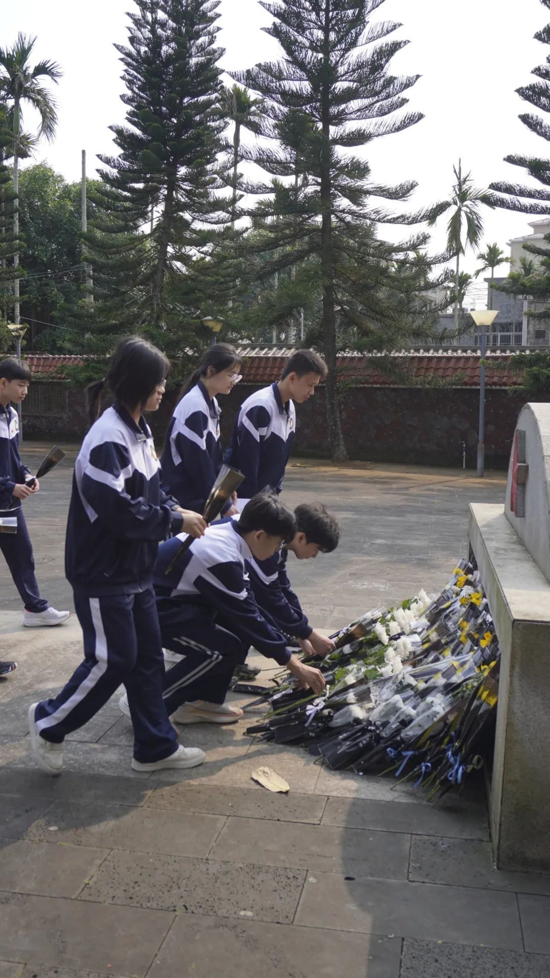 祭掃儀式正式開始。全體師生列隊于烈士紀(jì)念碑前,瞻仰碑身三分鐘。清風(fēng)拂過菊瓣,哀思凝作淚光,先烈們舍生取義的壯舉在靜默中愈發(fā)清晰。