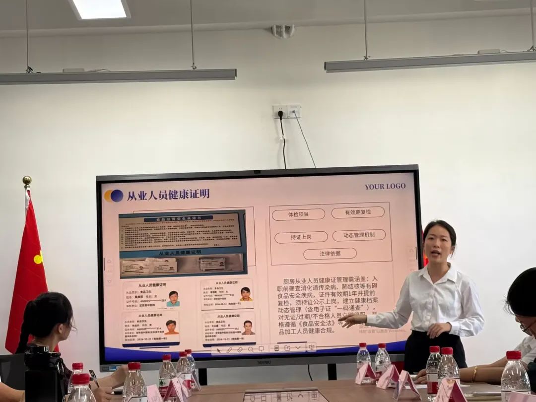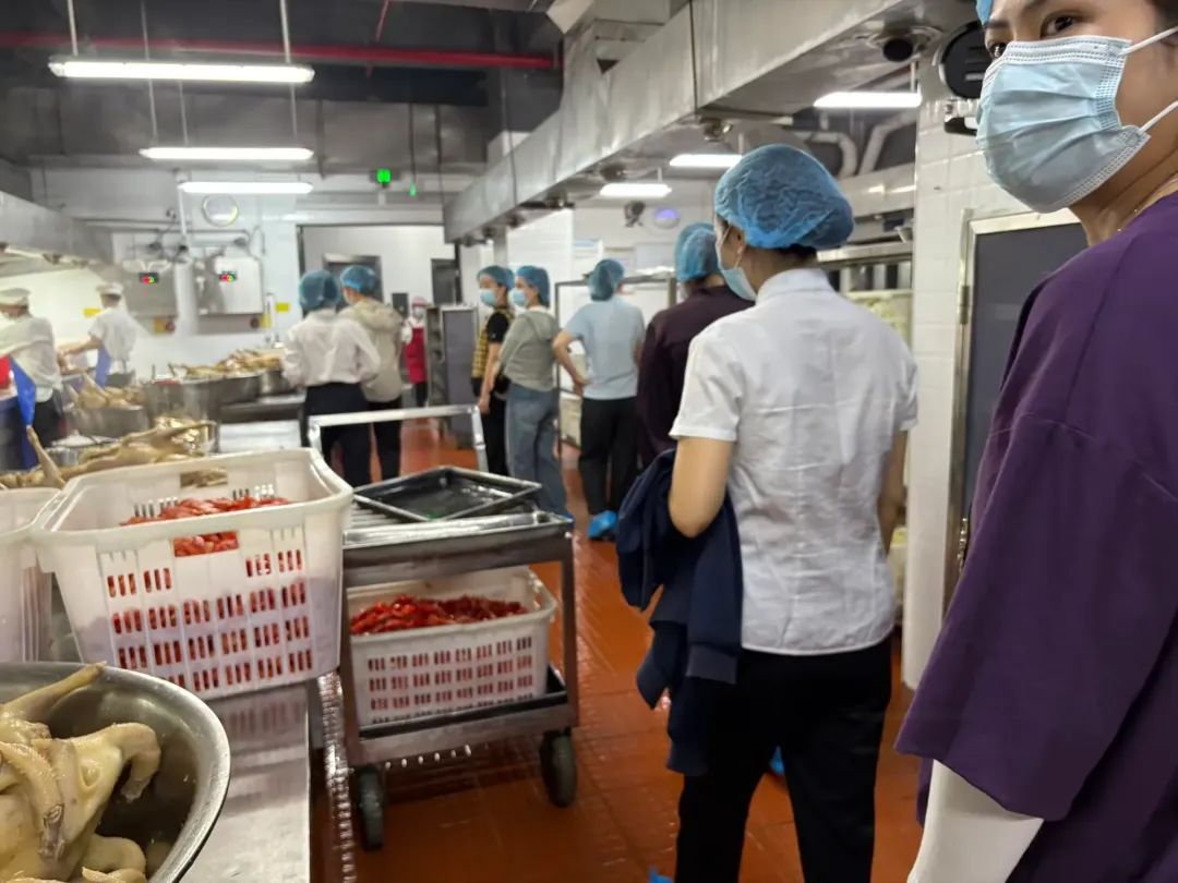 食堂負(fù)責(zé)人王小姍主任詳細(xì)介紹了食堂運(yùn)營(yíng)情況,每日食材抵達(dá)前,必經(jīng)歷“雙重核驗(yàn)”:農(nóng)殘檢測(cè)覆蓋全部蔬菜,檢疫證明與核酸報(bào)告同步查驗(yàn)肉類,不合格原料堅(jiān)決拒之門(mén)外;在人員管理上,我們構(gòu)建“培訓(xùn)+考核”雙機(jī)制:每月定期開(kāi)展食品安全規(guī)范培訓(xùn),覆蓋法律法規(guī)、操作流程、應(yīng)急處理等內(nèi)容,新員工實(shí)行“老帶新”結(jié)對(duì)指導(dǎo),全員須通過(guò)理論與實(shí)操考核方可上崗,讓規(guī)范操作成為融入日常的職業(yè)習(xí)慣。