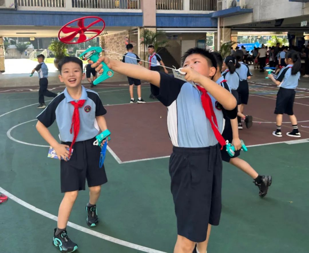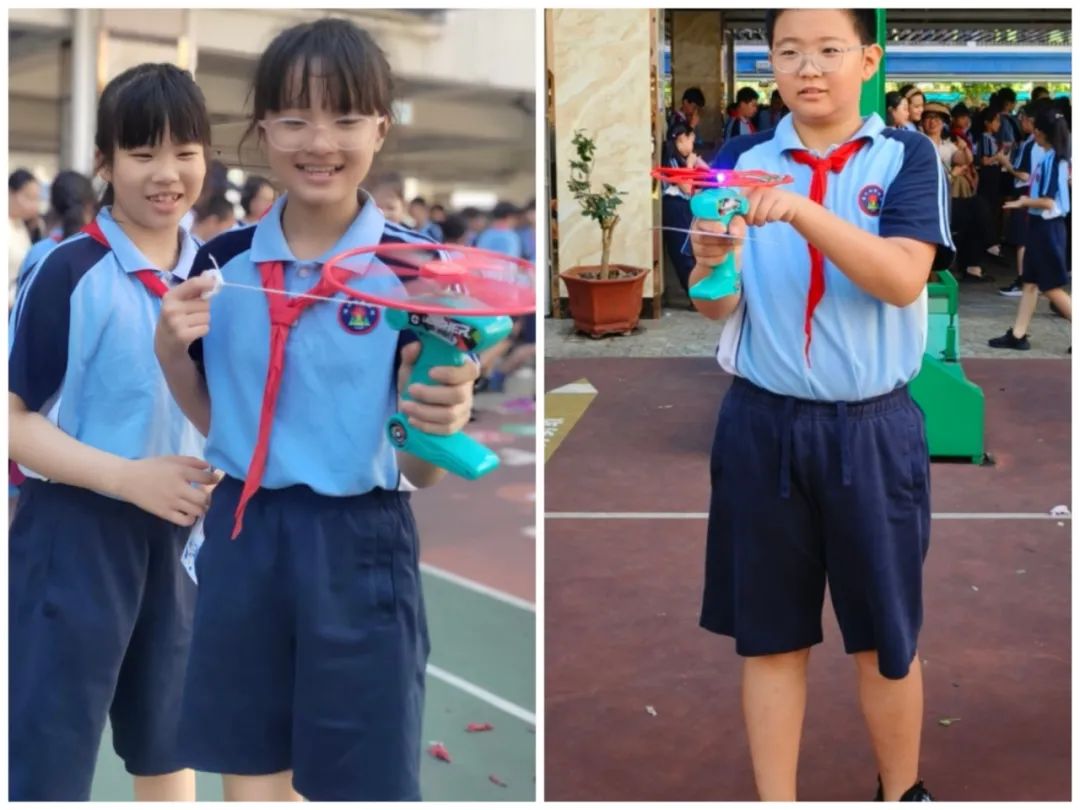 輕輕拉動繩線,竹蜻蜓如靈動的翠鳥般騰空而起!螺旋槳飛速旋轉,切割著空氣劃出優(yōu)美弧線,將童年的純真與歡樂一同帶向云端。這份傳統(tǒng)工藝與現(xiàn)代創(chuàng)意的巧妙碰撞,不僅讓學生們觸摸到科技啟蒙的溫度,更在"嗖"的一聲中,喚醒記憶深處那份會飛的快樂,讓古老智慧在新時代的校園里煥發(fā)新生。