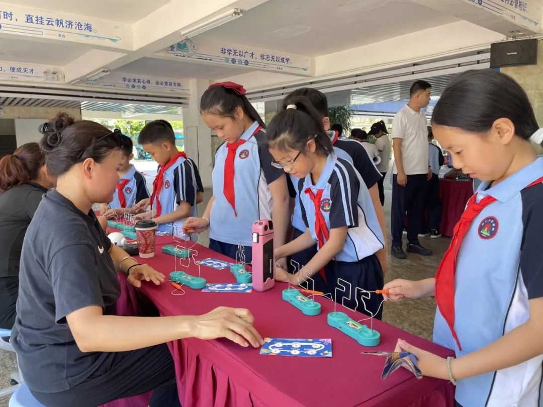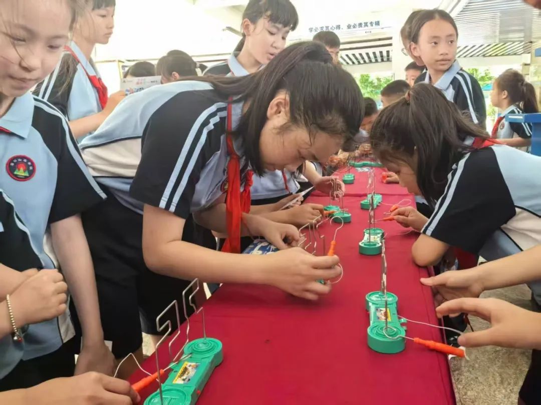 ?在教師團隊的悉心指導下,學生們沉浸式參與了十大特色科普項目:既有沖天火箭炮的震撼發(fā)射、趣味紙飛機的創(chuàng)意制作,也有VR虛擬世界的奇妙漫游、未來機器人的前沿探索;從寓教于樂的"趕雞進籠"科學游戲,到充滿現(xiàn)代感的3D打印、模擬飛行體驗;還有考驗動手能力的電碰迷宮挑戰(zhàn)、傳統(tǒng)與科技結合的手拉竹蜻蜓操作,以及充滿智慧的機械結構世界搭建。這些項目巧妙融合物理、生物、信息技術等多學科知識,以自助游園的創(chuàng)新形式,讓同學們在實踐中探索科學奧秘,在體驗中感受科技魅力,盡情享受科學帶來的無限樂趣。