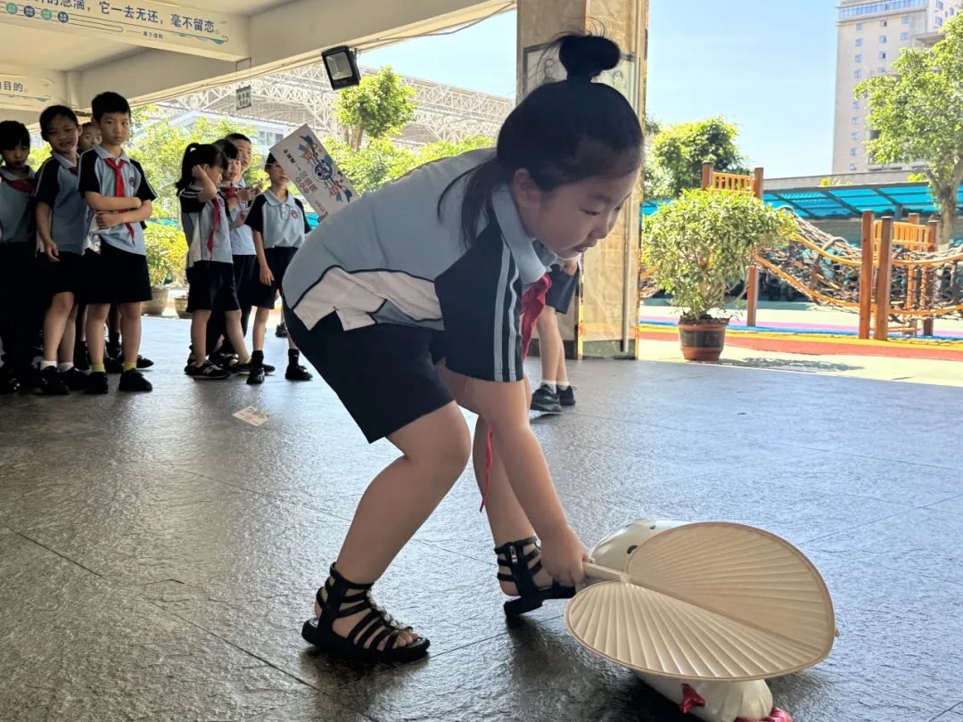 趣味趕雞大作戰(zhàn)來啦!同學們揮動手搖大蒲扇趕"雞"進籠挑戰(zhàn)反應力,同學們排隊體驗歡樂多,團隊協(xié)作笑聲爆棚!