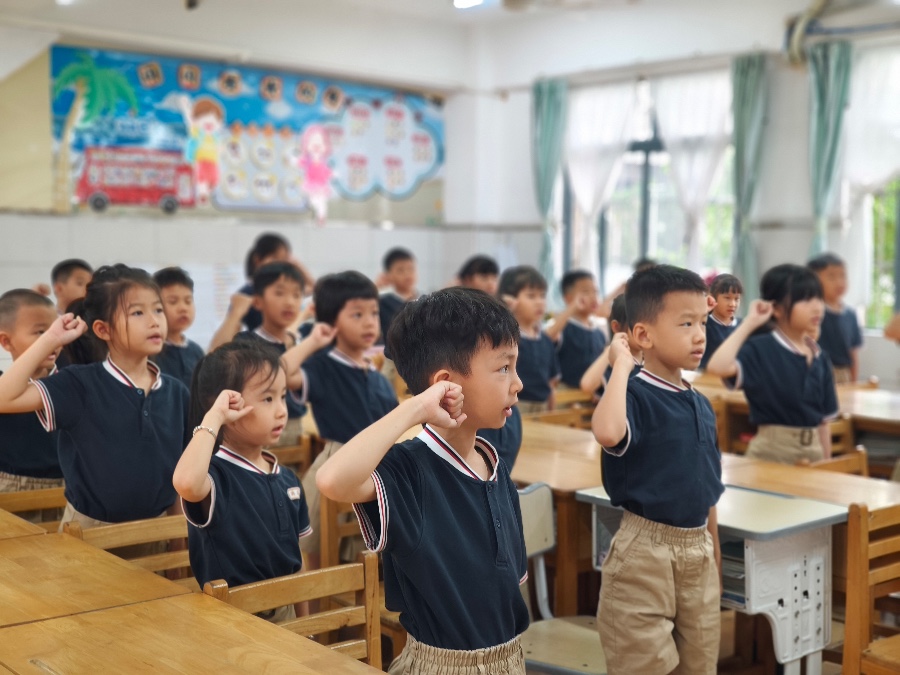 學(xué)生們?nèi)褙炞⒌貎A聽,積極地進行練習(xí),他們的小手認真地模仿著隊禮,臉上洋溢著對成為少先隊員的熱切期待。